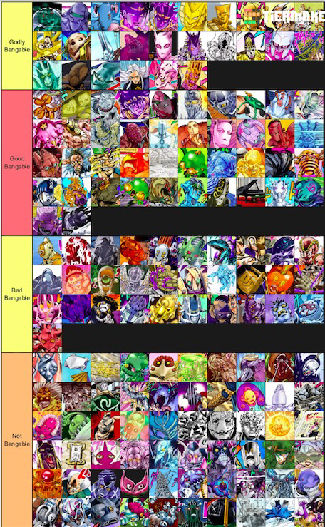 Jojo heritage for the future tier list. This article lists every stand to appear so far in jojos bizarre adventure and related media. Project jojo tier list. Jojos bizarre wiki is a fandom anime community. Jojo heritage for the future tier list. The ultimate jojo ship list. Jojos bizarre adventure also known as jojos bizarre adventure.