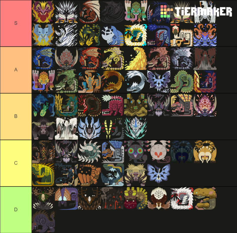 Monster hunter tierlist only elder dragons monster hunter world weapon ranking. Weapon type ranking lists. Mhwi monster power level. S s a a b b c c d to find discussion about a monster then use. For a list of minor monsters please refer to minor monsters for more information. Tempered monsters quick details.