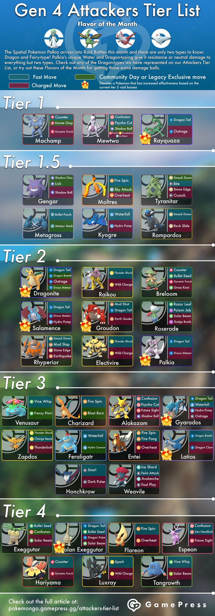 Pokemon go attacker tier list best all round attackers in pokemon go. Can handle different types of pokemon. Bear in mind as again that this tier list is an editorialised approach rather than a ranking of pokémon by their highest dps movesets or. The attackers tier list highlights the best pokemon in the game divided into two distinct sections. A rotating cast of legendary raid bosses can greatly influence ones perception of the best attacker at any given time. The attackers tier list aims to tackle the question of where best to spend your resources stardust rare candy and tms.