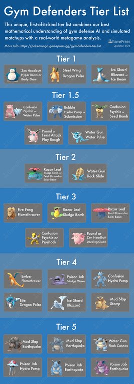 The silph road is a grassroots network of trainers whose communities span the globe and hosts resources to help trainers learn about the game find communities and hold in person pvp tournaments. Dragon breath unchanged. Pokemon that can easily take on gyms are ranked higher in the list. Pokémon tier list templates. Tap or click the appropriate button below in order to view each section. The best pokemon must be able to outlast lots of different pokemon in battle.